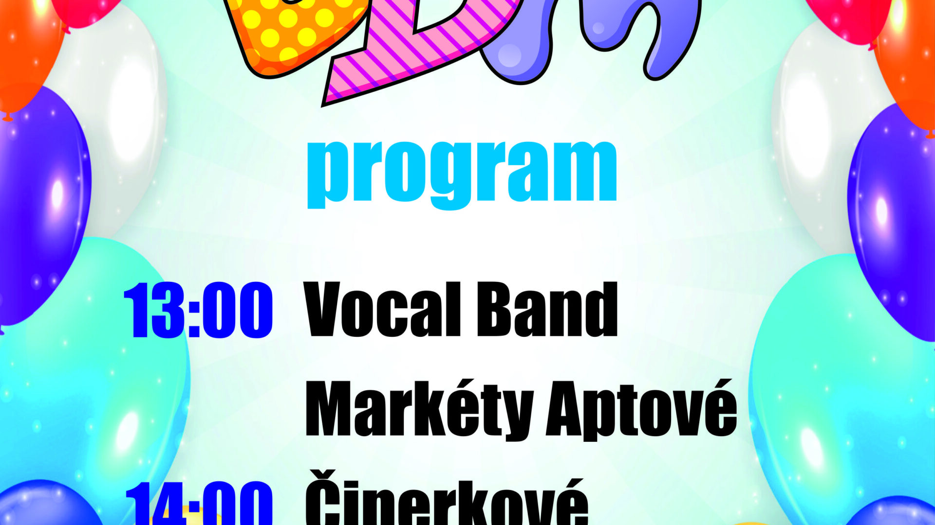 Těší se na vás Kája a Bambuláček, Čiperkové a Michal Nesvadba, bude tanec a zpěv, malování na obličej, modelování balónku, fotokoutek, klaun, cukrová vata, dobroty a zábava.