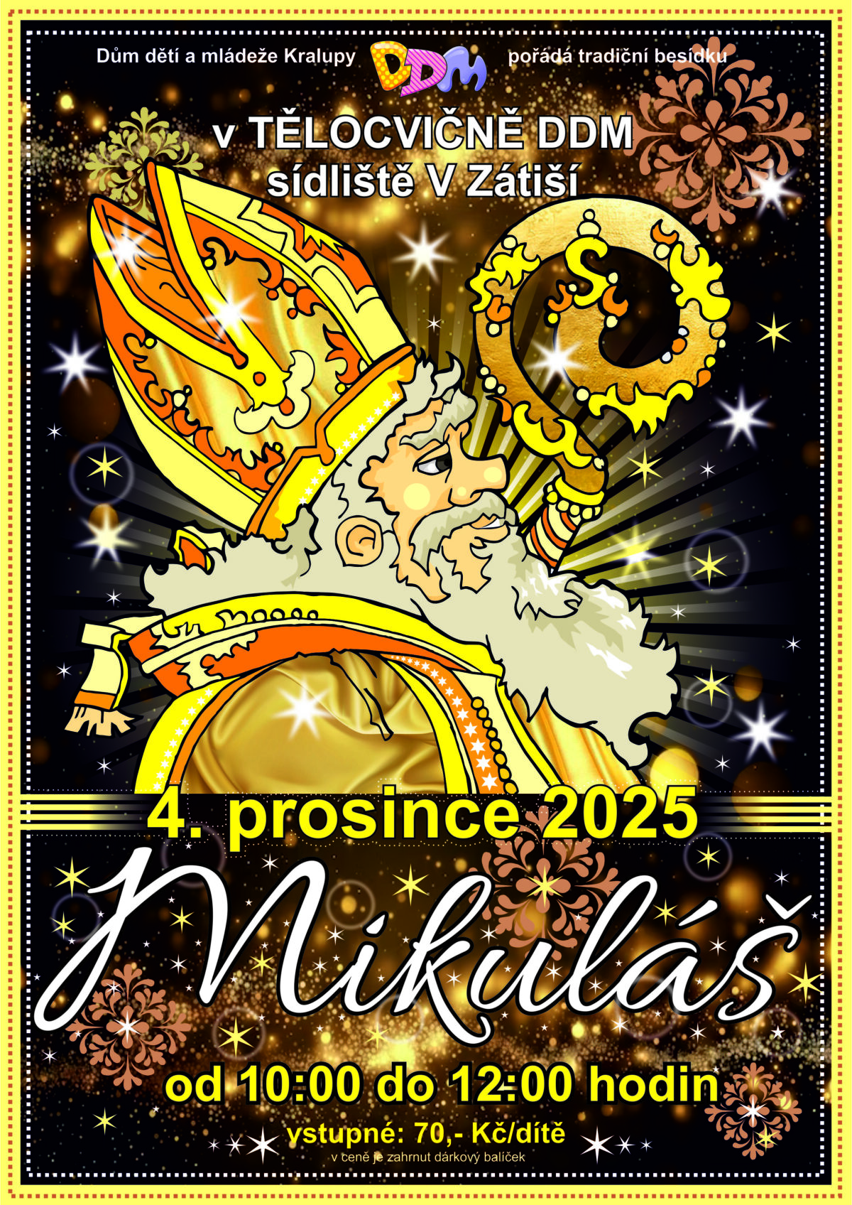 Pravidelná mikulášská veselice a nadílka pro nejmenší proběhne i letos v Tělocvičně DDM V Zátiší 735.